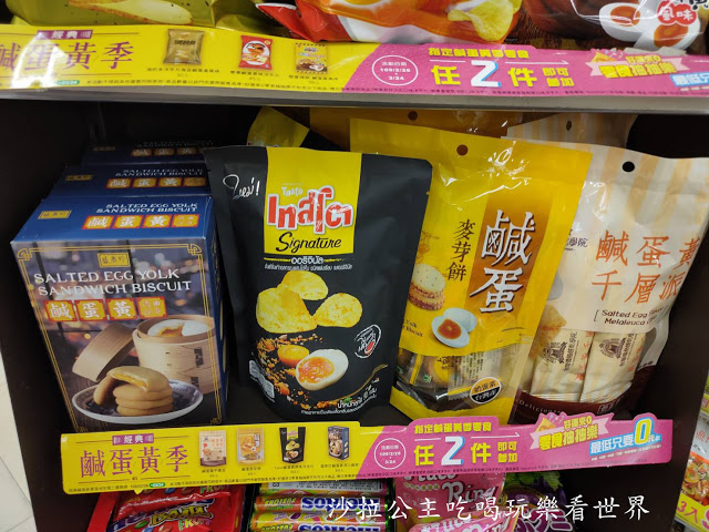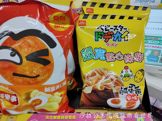 像是『超寬條餅-鹹蛋黃風味』、『鹹蛋黃千層派』、『鹹蛋黃麥芽餅』、盛香珍『鹹蛋黃流沙曲奇』.....等,都是7-11獨家販售