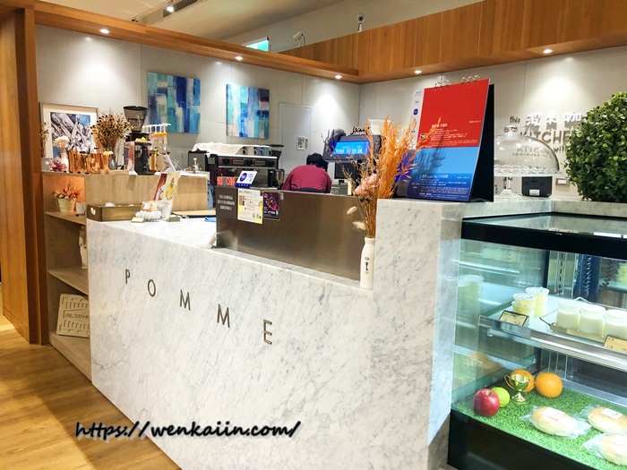 Pomme波米咖啡館的空間很舒適,在大空間的花蓮誠品分店中隔了一個區成了咖啡廳,擺上簡約的餐桌椅,就成了讓人放鬆跟享用美食的好地方,雖然不大但覺得很舒服。
