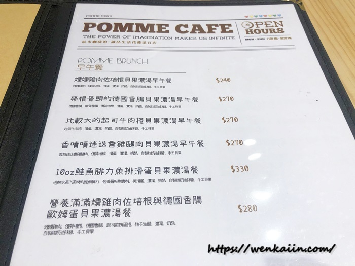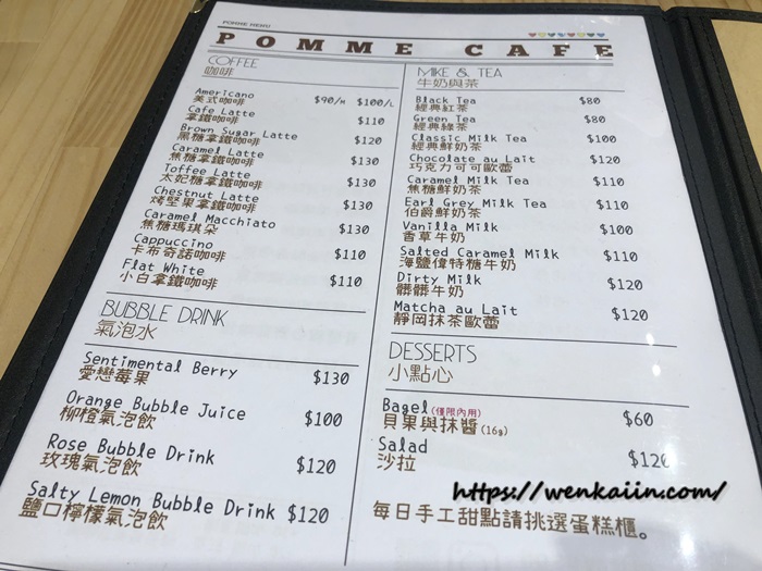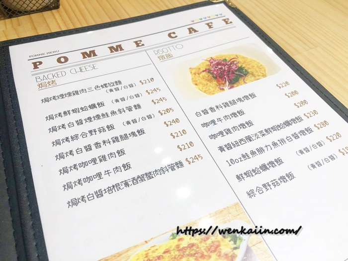 波米咖啡館菜單給大家參考一下,基本上就是以早午餐、義大利麵、焗烤、燉飯為主,選擇的口味還滿多,店內的手工貝果也很可以,可以試試。