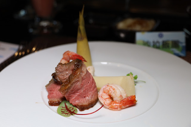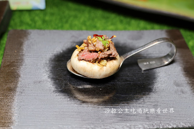 『山上炭烤美牛香、下海大啖美牛味』的活動準備了含甜點10道菜,把美國牛肉發揮到極致,美國牛肉與其他肉品或海鮮搭配在一起都是那麼的merge,現在就跟著沙拉的腳步一起前往『饗宴互動式鐵板燒』,大啖美國牛