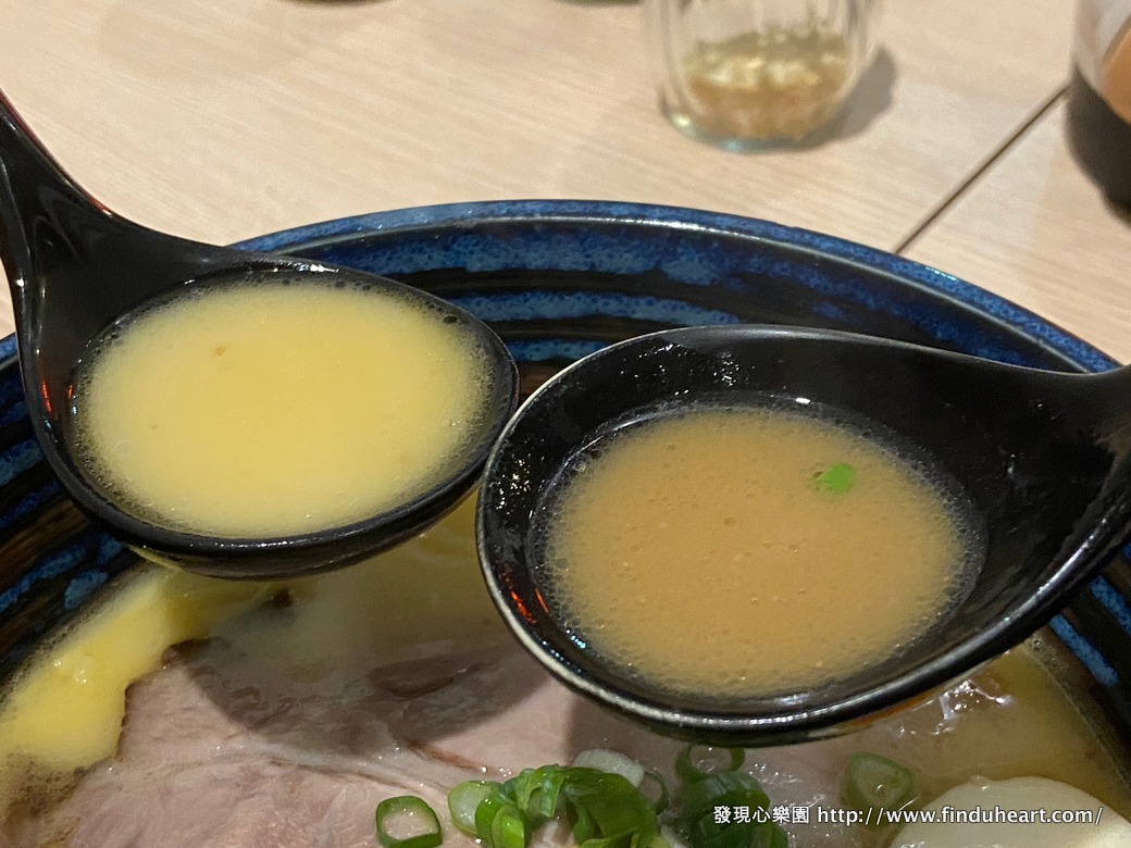 點了赤味噌拉麵跟豚骨拉麵兩種,把兩種湯頭放在一起