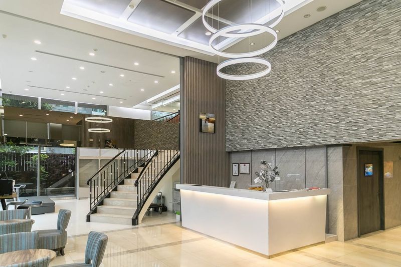 ▲明亮高挑的接待大廳以及24小時前台專人的服務,讓旅客安心放鬆的入住,享受美好假期。(圖/北投輕行旅)