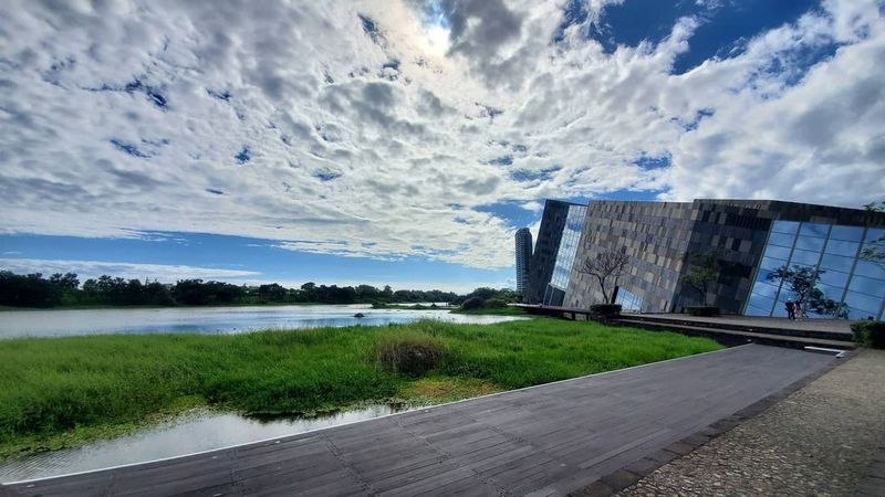 博物館入口就有知名打卡景點—天空之鏡,是來訪蘭陽博物館必拍美照上傳IG的打卡場景之一;大面玻璃鏡面反射著藍天與雲朵,置身其中畫面張力十足,彷彿也身處蒼穹之中,可以拍出遼闊奔放的特色照片。