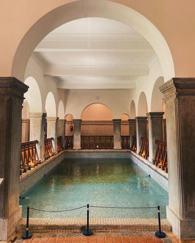 ▲大浴池旁的圓拱迴廊古典優美,讓人彷如走入過往的輝煌。(圖/IG @wen202tw)