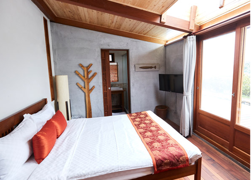 房間內的大面窗採光及絕佳視野將窗外遼闊風景盡收眼底;在清淨舒適,明亮通透的空間中,最適合將身體拋入柔軟的純白被褥中好好放鬆休息。純白與淺木質調的傢俱擺設,讓旅人可以盡情的在房間內紓緩旅途的勞累。
