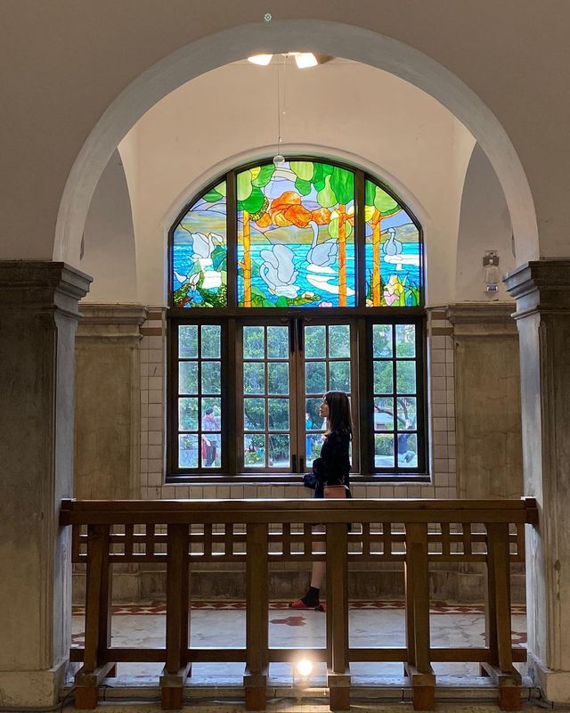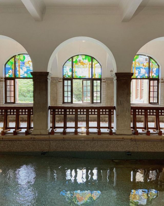 一樓壯觀遼闊的羅馬風格大浴池,及浴池外側迴廊牆上的彩繪玻璃窗花,為來訪北投溫泉博物館必拍景點,穿梭在博物館中,認識北投溫泉文化與歷史,更在古香古香的建築中彷彿聽見過去輝煌年代、北投浴場發生多采多姿的故事,感受歷史之美。