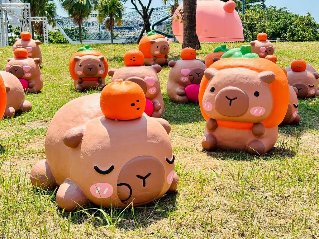 本次活動最大亮點莫過於首次登陸安平漁人碼頭的12米高的「卡比胖拉」水上氣偶,以經典慵懶泡湯造型現身,手抱在地特產「青皮椪柑」,搭配周邊水域環境,營造出療癒人心的可愛氛圍。