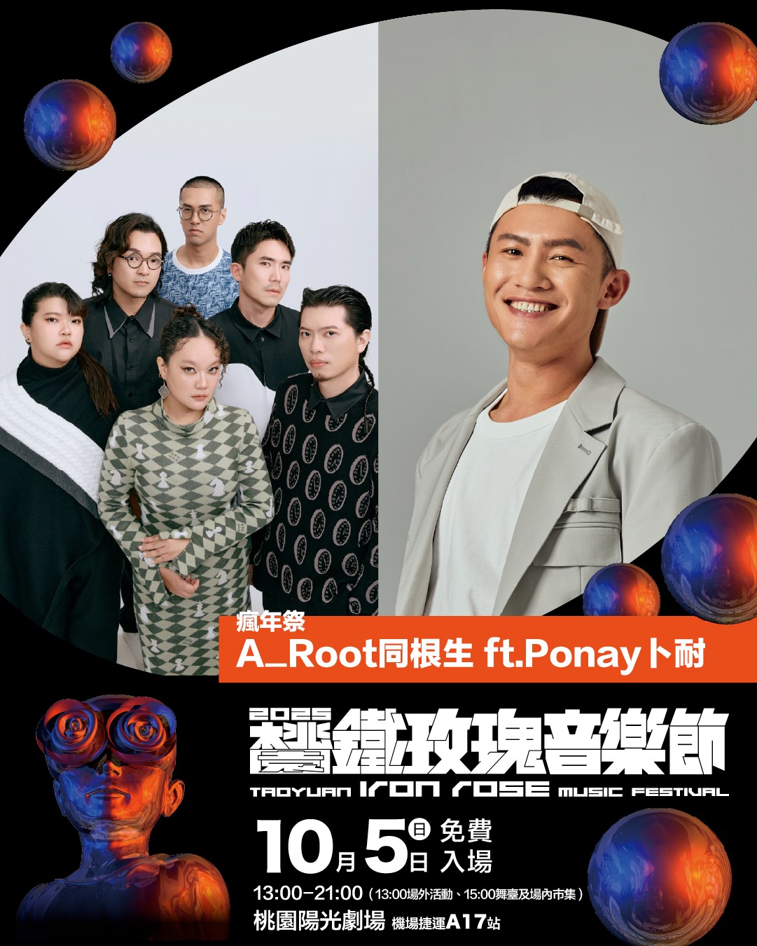 以及10/5 鐵玫瑰限定SHOW-瘋年祭:將帶來一場充滿濃厚底蘊與原始力量的音樂祭典。由擅長將台灣傳統樂器融入現代創作的A_Root同根生樂團,攜手風格強烈的歌手Ponay,共同呈獻一場名為「瘋年祭」的震撼演出。這不僅僅是音樂的跨界,更是文化的融合!