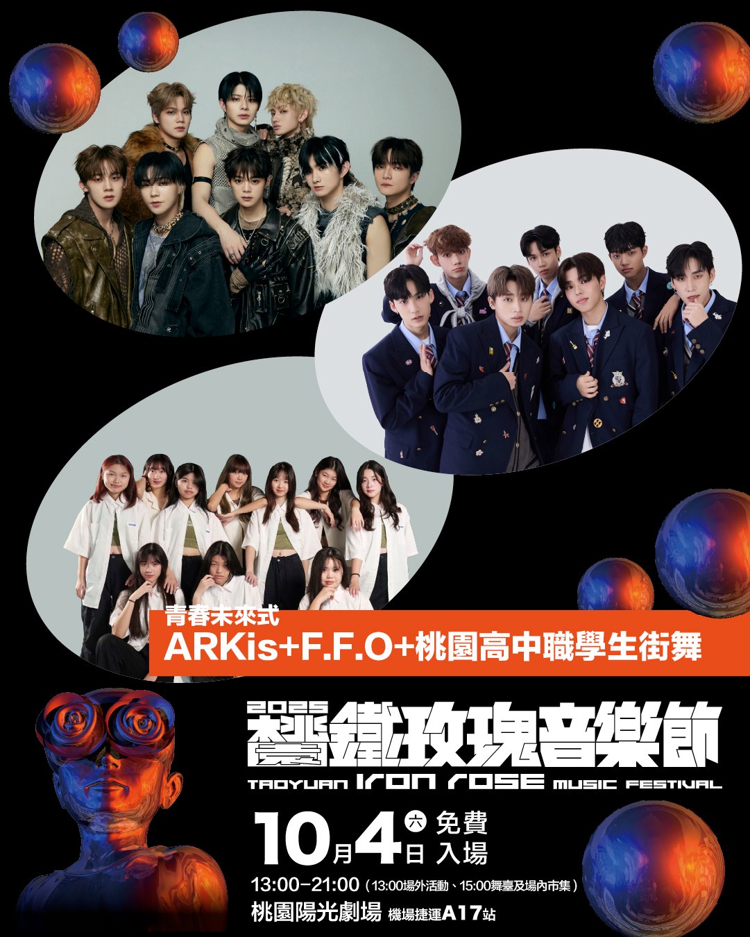 分別為10/4 鐵玫瑰限定SHOW-青春未來式:由選秀節目「原子少年2」出身的新生代大勢男團ARKis與F.F.O,將首度聯手桃園在地的高中職學生街舞團隊,用最澎湃的節拍與滿滿能量,展現屬於新世代的創意與無限可能,共同引爆舞台。