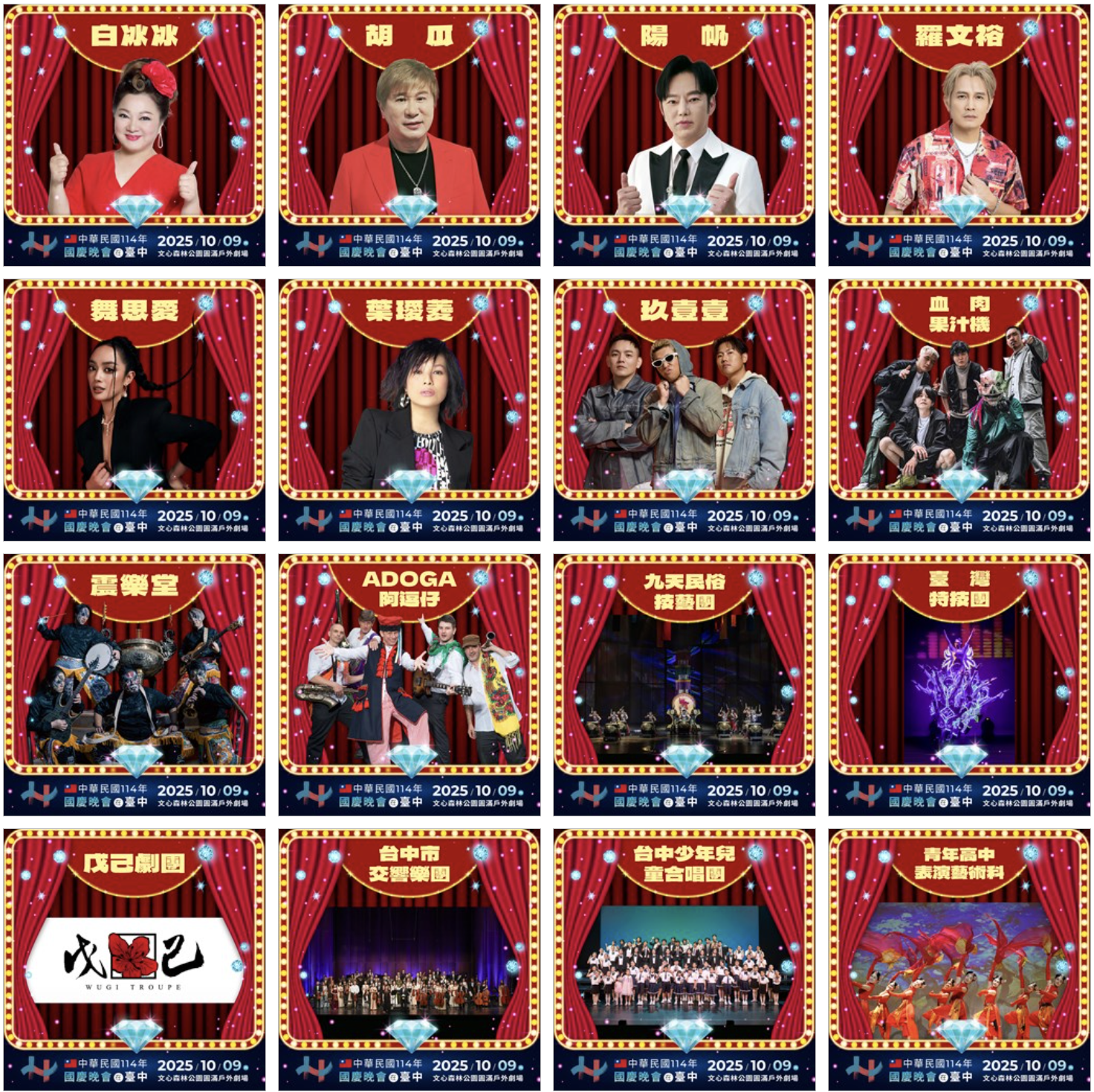 你以為只是制式化的國慶晚會嗎?那你就大錯特錯了!本次晚會以「中華民國、台灣味、台中Style」為主軸,將邀請跨世代、跨領域藝人團體登台演出,卡司從經典到搖滾,世代大集合!