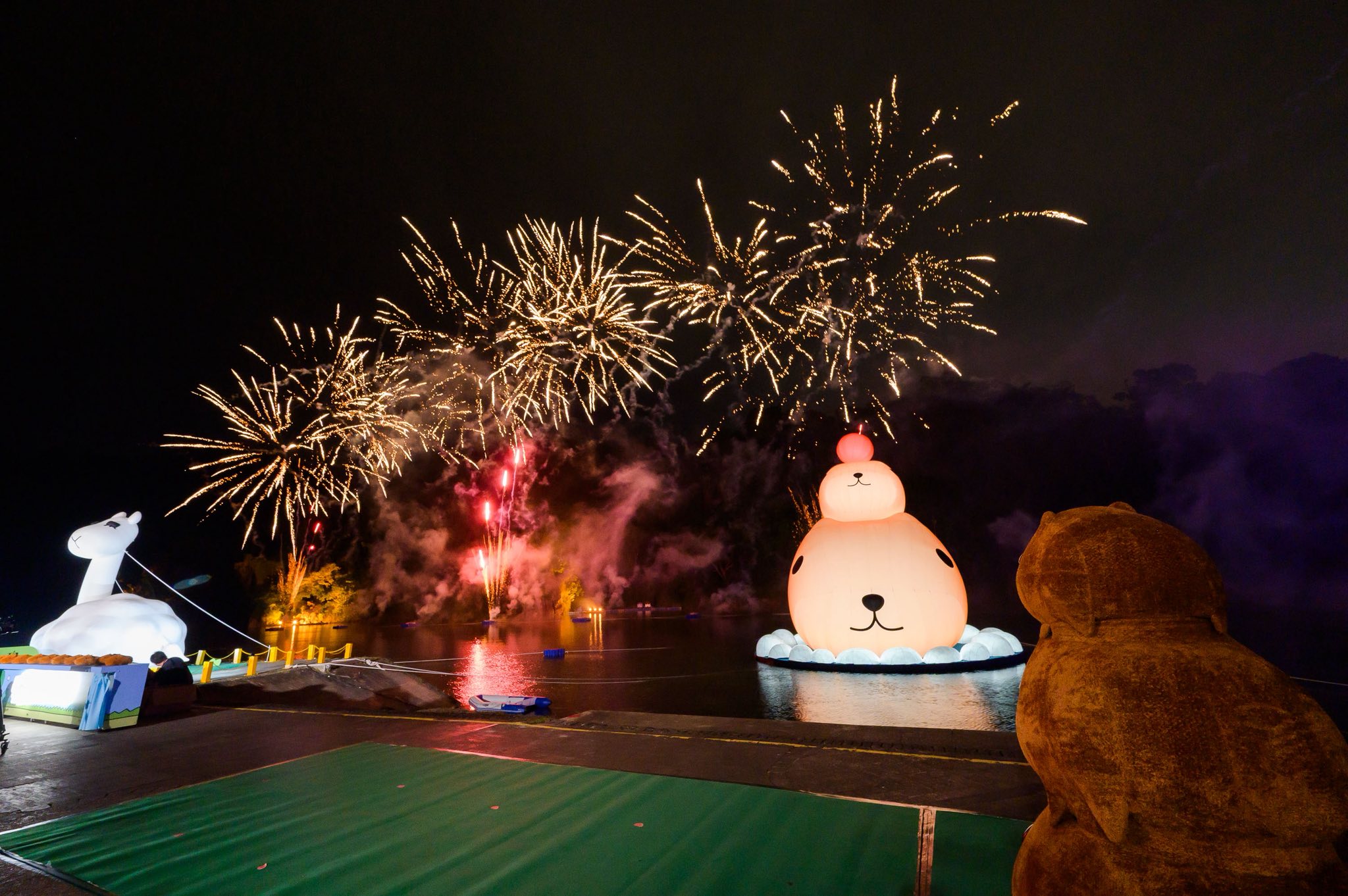 碧潭「水豚君」地景展加碼登場!11/1 19:05-19:10有浪漫絢麗煙火秀,飼育員小哥與水豚君一同仰望夜空共賞煙火的場景搬進碧潭,營造出如詩如畫的浪漫氛圍。接著展覽期間每逢周末假日還有「水豚君快閃店」,在推出碧潭限定周邊商品的同時也設有可愛拍照照景區,藉由可愛角色與在地風景結合,打造專屬新北的文化魅力。