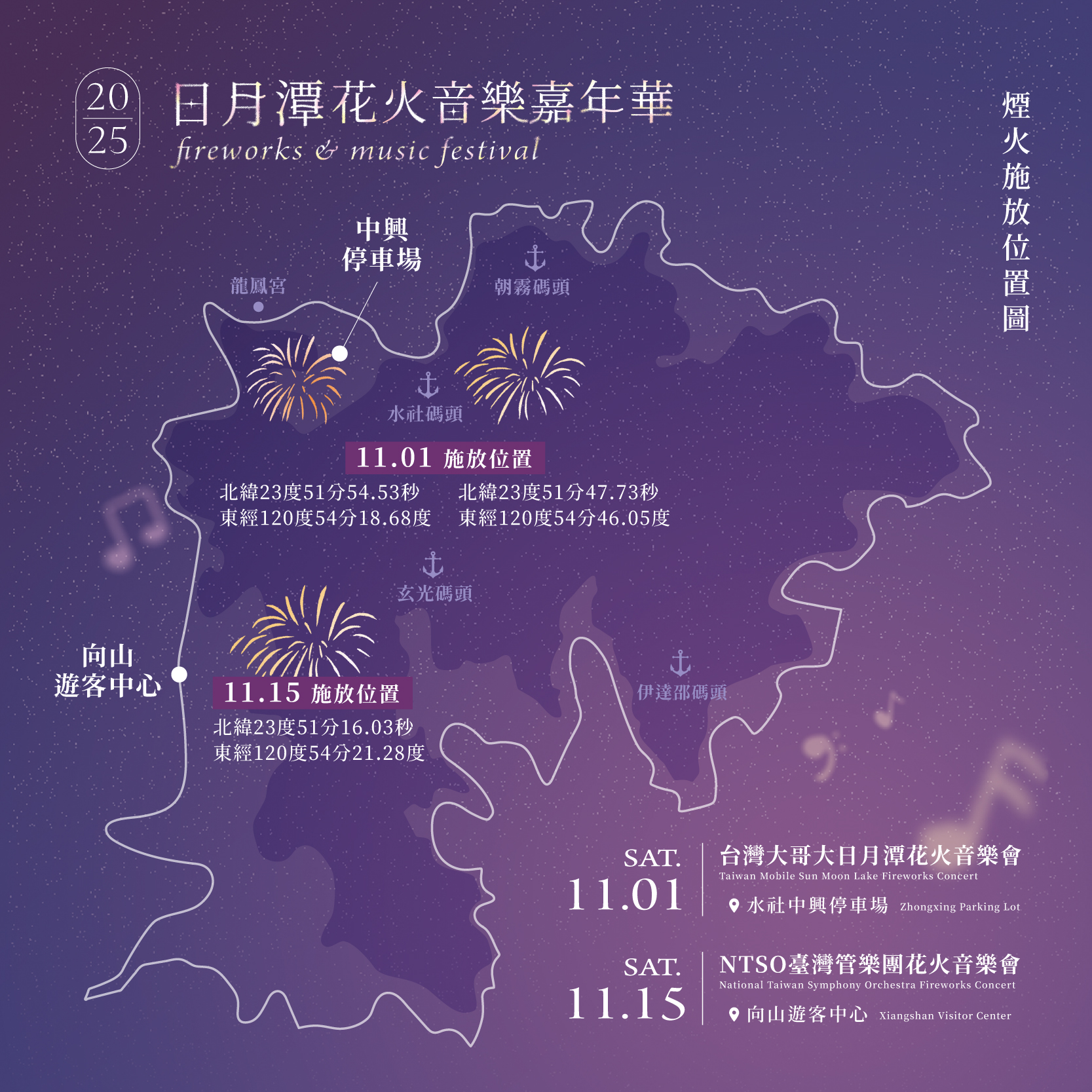 秋日最浪漫!2025日月潭花火音樂嘉年華第二場來啦!「台灣大哥大音樂會-心語碼Beat Talk」將於11月1日在水社中興停車場登場,主辦方邀請多組實力派藝人輪番開唱,並在演唱會第1、7、11首表演後及演唱會結束後施放共計450秒煙火,而第三場花火音樂會則是11/15在向山遊客中心登場。兩場皆為免費入場,在這個微涼的秋夜一起到日月潭看煙火、聽音樂、被浪漫包圍吧~💖