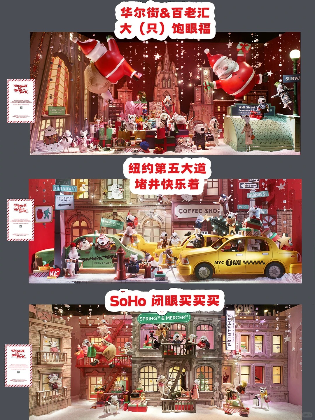 每年的春天百貨聖誕櫥窗都令人萬眾矚目,今年以「紐約聖誕」為主題,將百老匯、時代廣場、洛克菲勒中心等經典紐約地標搬進巴黎, 125隻不同風格的可愛狗狗齊聚,在閃爍的燈光與音樂中,邀您一起度過一個充滿歡笑的聖誕時光,無論是大人還是小孩,都能在這些夢幻櫥窗前找到節日的美好與驚喜。