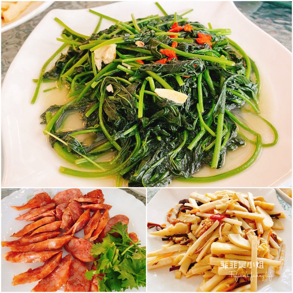 其他像是土窯雞、有機枸杞地瓜葉、炒天龍筍、紅麴香腸,滿滿一大盤份量超足,10人來吃都沒問題呀