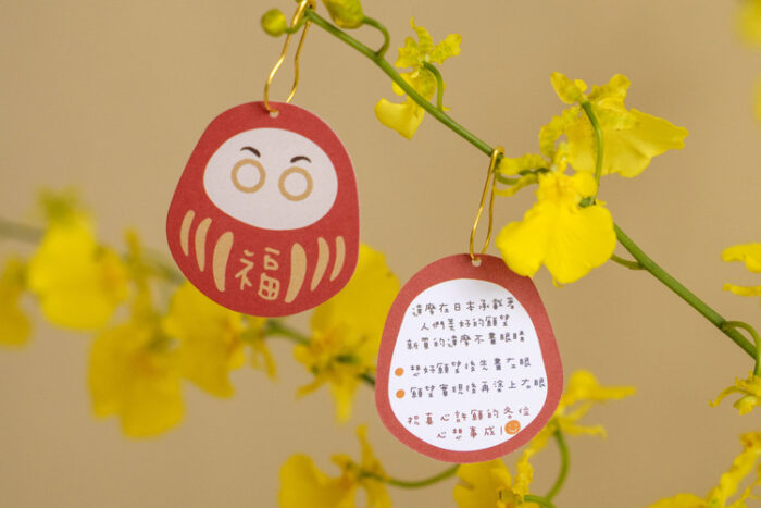 不僅內容物誠意十足,包裝更是以喜氣的紅色為主體,並且搭配上獨家達摩不倒翁小賀卡,祝福喜氣滿滿。日本的達摩不倒翁有點睛祈福的作用,先畫左眼祈求願望,寓意著太陽從東方升起,等願望完成時,再將右眼畫上!而達摩不倒翁身上的紋身是福氣的象徵。