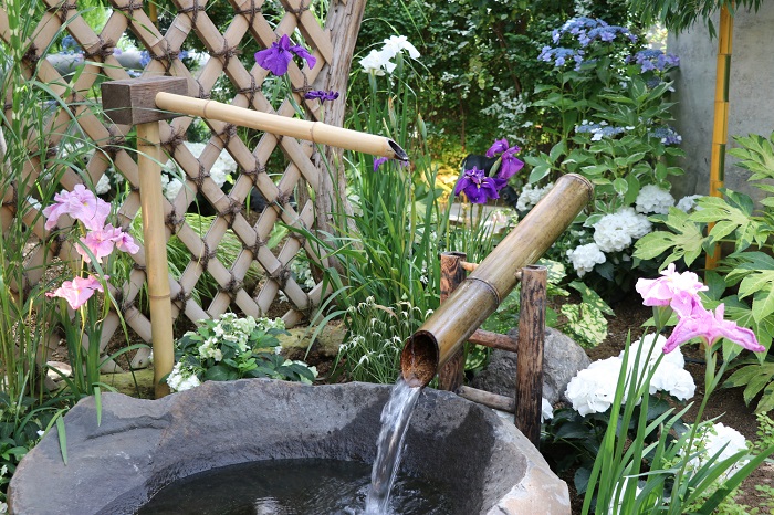 例如常能在日式庭院裡見到、流動的水裝滿竹管後,會因為水往低處流動而敲擊石頭發出「扣」一聲的「添水」(又名僧都、そうず),想必大家都曾在日劇或是動畫裡見過吧?