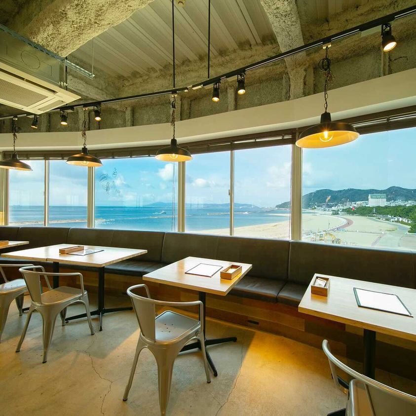 位在須磨海灘旁的海景咖啡廳,可欣賞一覽無遺的海景和鄰近遊艇港悠遊出航及宛如夏威夷海灘般的愜意景象。