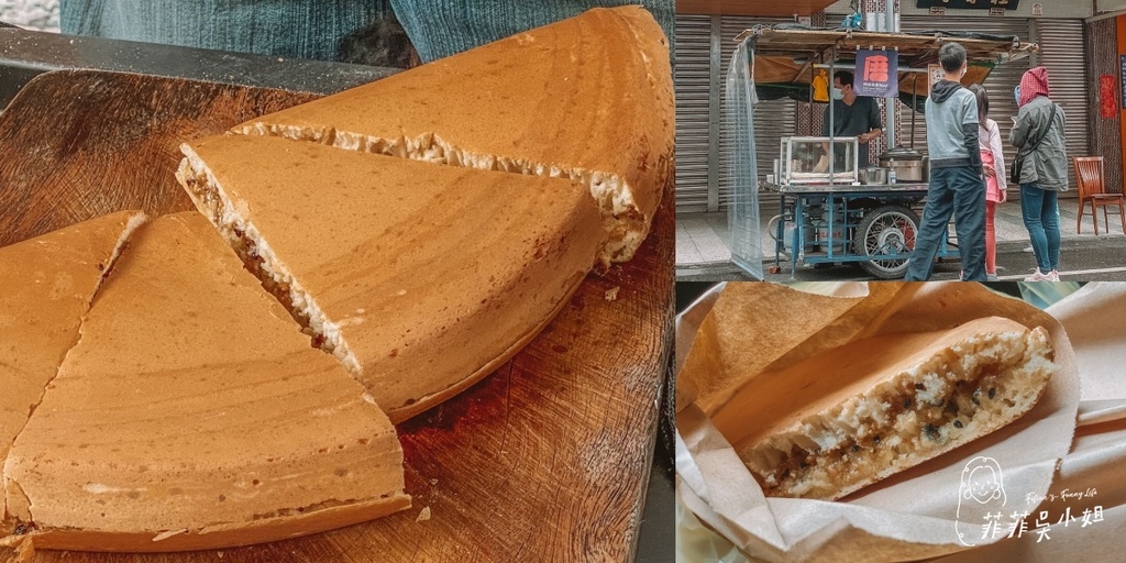 剛起鍋的米糕煎外皮脆脆的,裡頭的砂糖遇熱融化後和麵粉、芝麻和在一塊兒,吃起來軟軟糯糯的,香香甜甜,而且吃一片就很有飽足感。