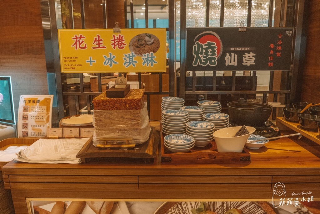 享享自助百匯網羅宜蘭各式特色美食小吃,像是櫻桃鴨烤鴨捲餅、花生捲加冰淇淋,在享享都吃得到,其他菜色使用在地食材製作,品項也相當豐富多元,紅白酒也可無限享用,吃得超過癮!