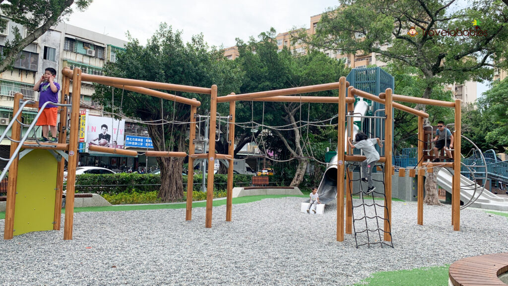 木頭色系的遊具讓小朋友很像在樹上攀爬。
