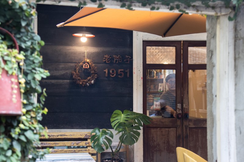 【老院子1951】在八年前由老闆承租下來,將建於西元1951年的老宅維修整建,善用空間格局佈置出室內溫馨的用餐空間,與戶外綠意盎然的休憩院子,於建築與傢俱中都留有細膩的小細節,比如水龍頭門把、國小懷舊課桌椅、舊鐵門做成的玻璃木桌,用老物件拼組出歲月靜好的年代,讓人不禁沉醉其中。