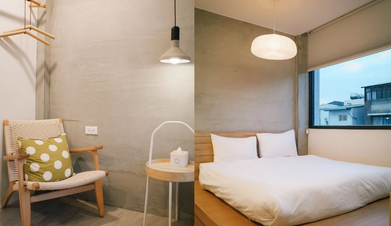 圈叉行旅以極簡工業風聞名,最大的特色就是房子中心挖空的天井,陽光從天井自然灑落下來,採光超好讓建築內部格外明亮,白灰色石紋牆面搭配綠色植物點綴,再加上暖調性的復古風傢俱,簡單卻又不失質感。雙人湯屋房型有美麗的白色浴缸,玩累了泡個澡全身的疲憊立馬一掃而空,而且全棟都特別設置除氯軟水系統,洗完澡皮膚滑滑嫩嫩的超級舒服,讓人一覺到天亮。