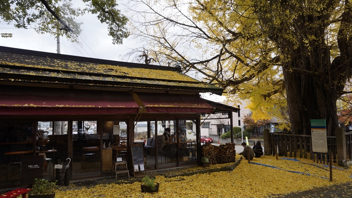 一步步爬上階梯後就是壯觀的熊野神社,秋季時還會販售期間限定的銀杏御朱印,非常精緻漂亮!而在熊野神社周邊也有幾間咖啡廳,可以在室內靜靜欣賞美麗的銀杏。