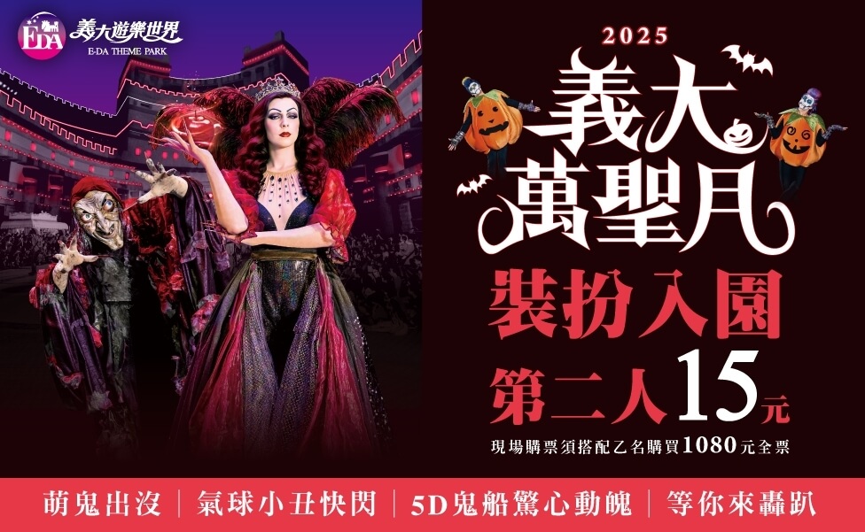 今年萬聖節,義大遊樂世界直接升級成「萬聖月」!從女巫聯盟萬聖舞會、小丑快閃、萌鬼巡遊,到超人氣韓國鬼片《咒你》改編的5D鬼船,全園區都被萬聖氣氛包圍。還有藝人嘉賓萬聖夜開唱,白天拍美照、晚上嗨翻天,快揪親友一起變裝搞鬼去!