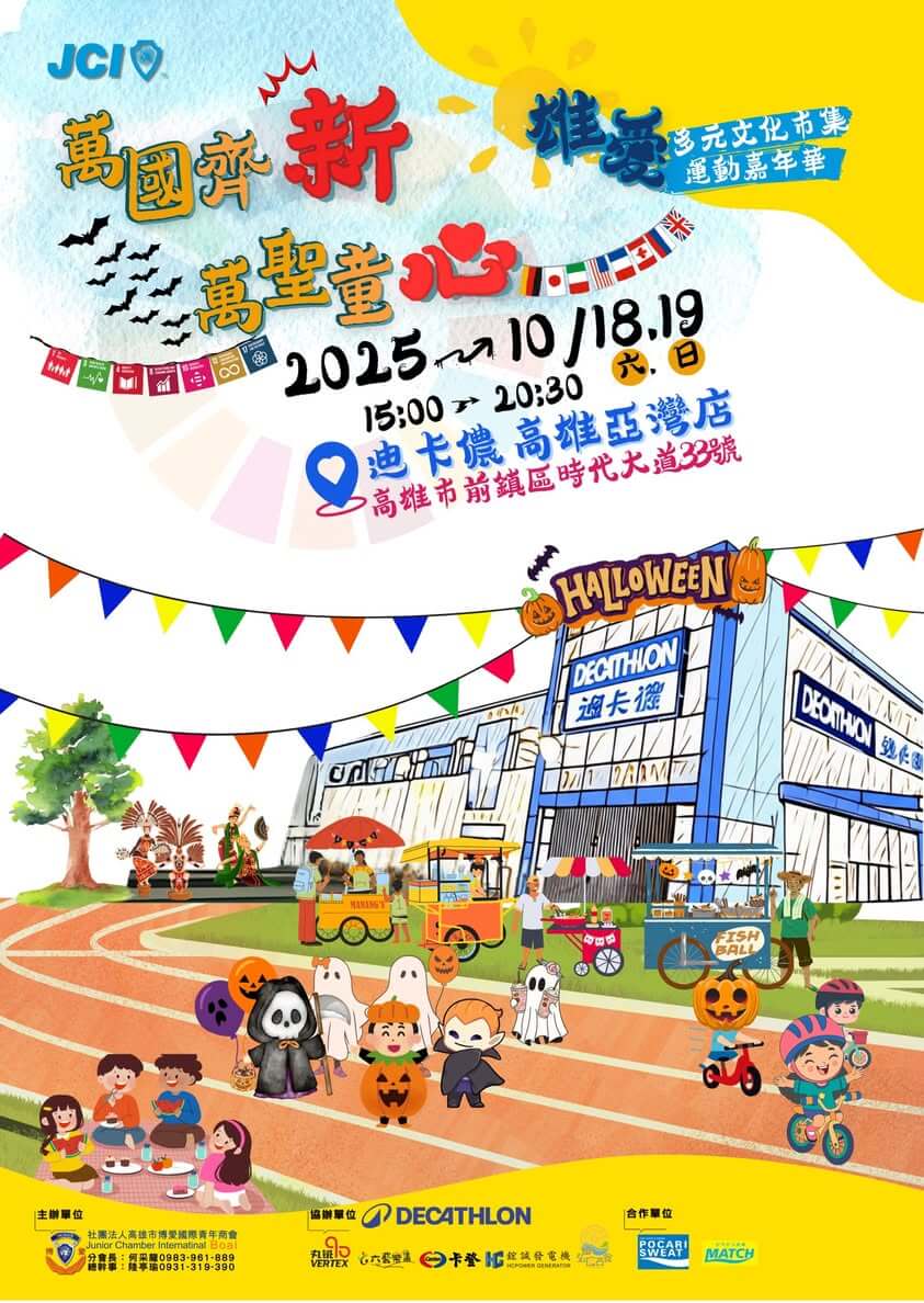 2025《萬國齊「新」萬聖童「心」》萬聖節活動即將在迪卡儂高雄亞灣店熱鬧登場!融合多元文化市集、趣味運動會、親子互動體驗與可愛變裝活動,不只孩子玩得開心,大人也能盡情打卡拍照,感受萬聖節的童趣魅力!