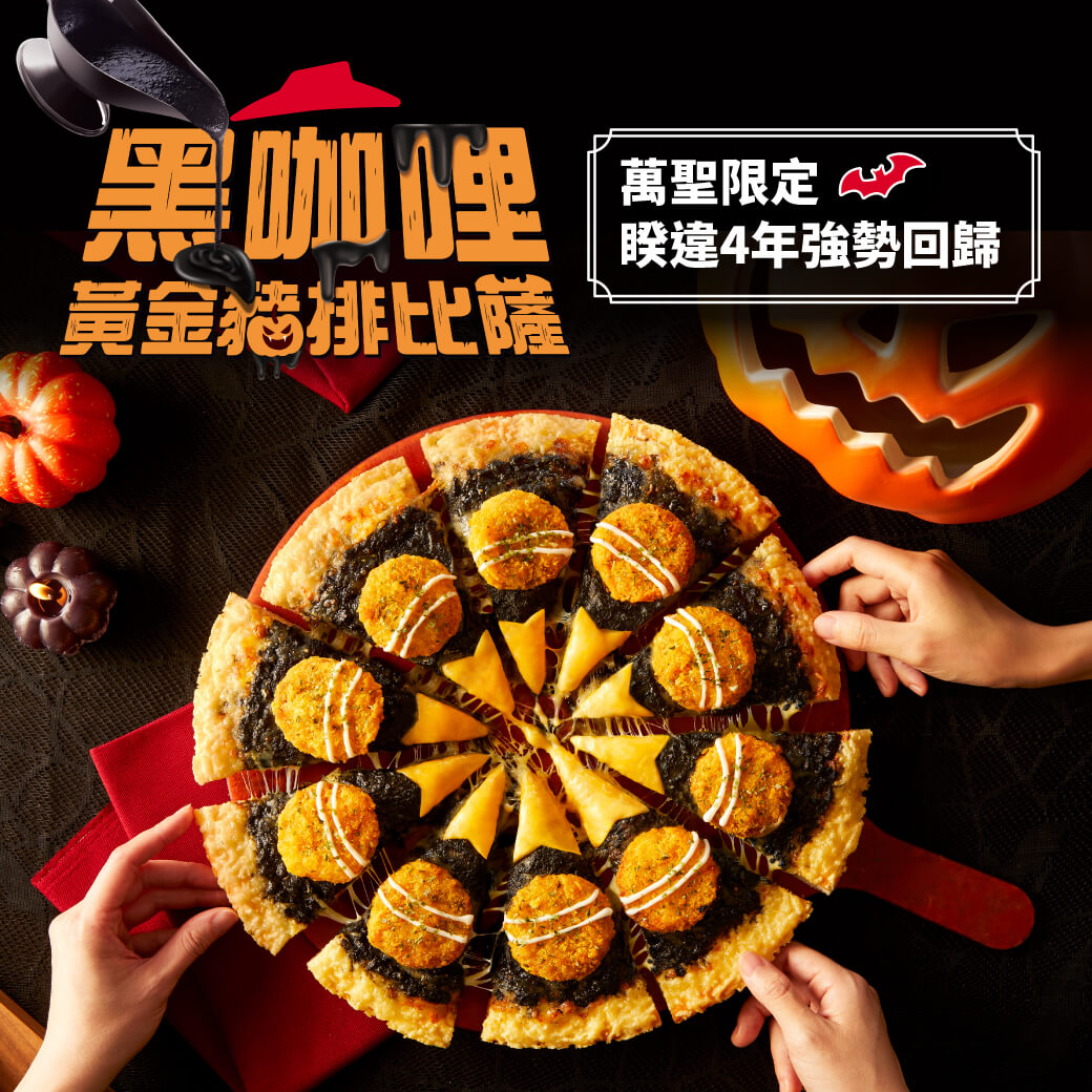 今年萬聖節不只要搞怪,更要吃得有氣氛!必勝客推出超狂限定「黑咖哩黃金豬排比薩」,濃郁黑咖哩與金黃炸豬排強勢聯手,打造視覺與味覺都充滿萬聖節感的暗黑系美味。特製黑咖哩醬以洋蔥、紅蘿蔔熬製出焦糖香氣,再結合日本咖哩塊與多種香辛料,香氣層層堆疊,一口咬下就上癮!搭配厚實酥脆的黃金炸豬排,外酥內嫩、份量十足,每一片都是節慶氛圍滿點。三種起司餅皮濃郁加乘,整體香氣濃厚又邪惡,現在只要 $399 就能嚐到,萬聖節想來點「暗黑系澎湃感」的你絕不能錯過!