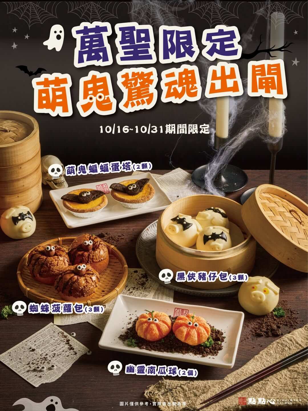 萬聖節怎麼能少了港點霸主「點點心」的搗蛋助陣?今年餐飲話題王者緯豆集團再度聯手旗下三大品牌推出萬聖節限定美食,「點點心」祭出幽靈小點「萌鬼系列」,每一款都可愛到讓人捨不得吃!主打的「萌鬼蝙蝠蛋塔」將酥脆港式蛋塔加上 Oreo 蝙蝠翅膀,飛上餐桌萌度爆表;「蜘蛛菠蘿包」則是可可風味外皮搭配奶香麵包,一口咬下甜蜜交織;最受歡迎的「黑俠豬仔包」流沙爆漿依舊療癒,但這次戴上黑色俠客面罩變身暗黑潮豬;還有「幽靈南瓜球」金黃外衣裡包著乳酪與南瓜,Q彈甜香。從甜點到造型全是打卡焦點,萬聖節一定要來點點心嘗鮮一波!