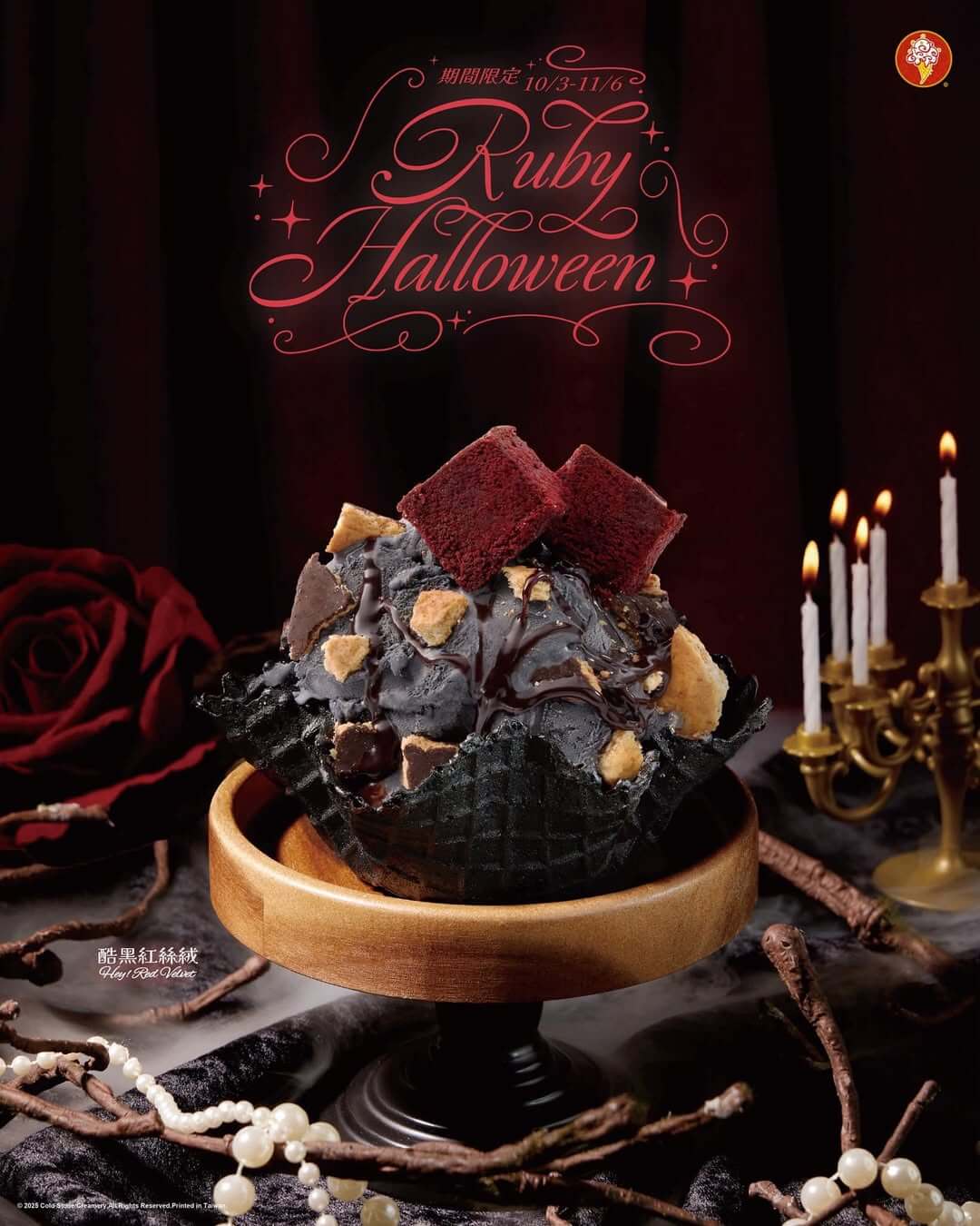 今年 COLD STONE 推出的「萬聖嘉年華」系列冰品不只好吃,更超吸睛!主打「酷黑紅絲絨」以黑玫瑰鹽冰淇淋為基底,拌入黑可可餅乾與濃郁巧克力醬,最後點綴綿密紅絲絨蛋糕,鹹甜交織、層次豐富,根本萬聖節的暗黑女王級甜點!同步推出的「QQ極濃巧」、「開心極濃巧」與「紅絲絨極濃巧」則分別以OREO、麻糬、焦糖脆餅與紅絲絨蛋糕創造出多重口感驚喜,加上萬聖節限定回歸的「極黑脆餅」,不論視覺還是味蕾都一次滿足!