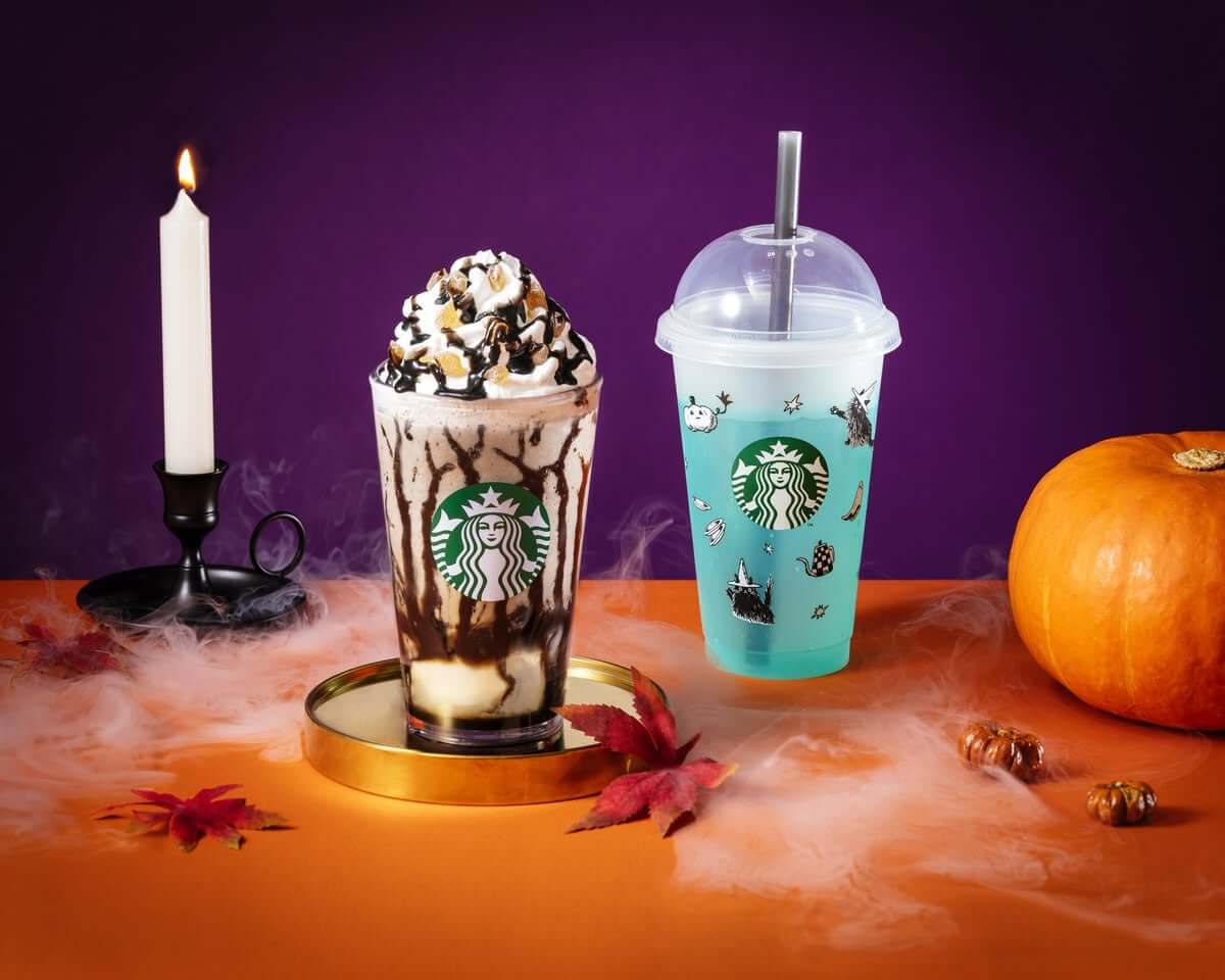 隨著夜色降臨,星巴克也悄悄展開萬聖味蕾派對!今年限定飲品「夜幕狂想曲星冰樂」,以濃郁黑芝麻醬為基底,加入黑糖醬、滑嫩杏仁豆腐與 Q 彈黑糖麻糬丁,整杯飲料充滿神秘魔法感,一口一驚喜!同步推出的「冰搖可可脆粒楓糖燕麥咖啡」則將楓糖與可可香氣融合,搭配燕麥奶基底更添秋意。若想入手萬聖周邊,還可加購「冷變冷水杯」享優惠價,杯身會隨溫度變色,宛如萬聖變裝道具,顏值滿分超吸睛!