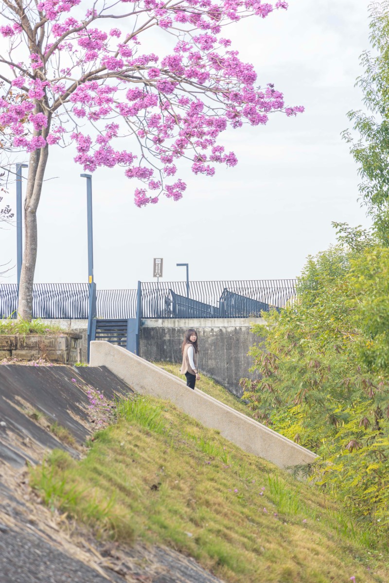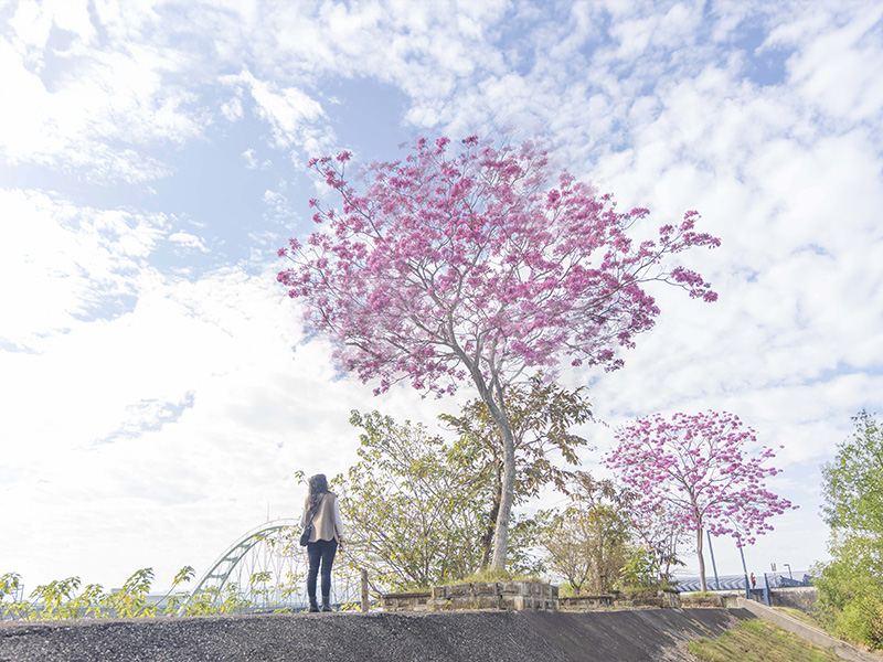 沿著堤防自行車道緩緩前行,洋紅風鈴木隨風搖曳,花瓣輕輕飄落在步道上,宛如置身於一場粉紅色的夢境之中。這裡不僅適合拍照打卡,還是散步和騎自行車的絕佳場所,讓你徹底放鬆心情,擁抱大自然的美好。