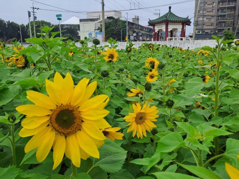 隨著春節到來,清水區公所旁的金色向日葵花海已進入最佳賞花期,大片向日葵迎著陽光綻放,宛如金色海洋,在微風中輕輕搖曳,為這座城市增添一抹溫暖明亮的色彩。今年特別融入在地特色裝置藝術,結合清水知名美食,如筒仔米糕、手工擀麵、燒圓仔湯,讓這片花海不僅是視覺享受,更充滿濃厚的地方文化韻味,成為春節期間最值得打卡的夢幻景點。