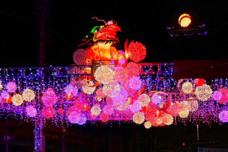 今年的燈飾裝置以「龍城」為設計靈感,將苗栗的歷史與傳統融入璀璨燈海,展現濃厚的節慶氛圍。夜幕降臨後,走進苗栗市區,你將看到中正路、苗栗玉清宮與苗栗市公所周邊都換上了節日的華麗裝扮。在南苗三角公園旁與玉清路玉清宮牌樓處,特別設置了龍形燈籠穿梭雲霧的動態裝置,金黃龍影盤旋於燈光之間,宛如祥龍飛舞,帶來滿滿的祝福與喜悅。