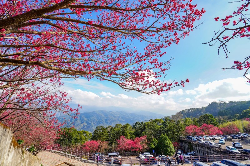 協雲宮座落於海拔約700公尺的山區,氣候涼爽,環境清幽,成為賞花愛好者心中的秘境。今年的花季預估可持續至2月中旬,讓更多民眾有機會親眼目睹這場大自然的視覺饗宴。沿著蜿蜒的山路前行,兩旁的山櫻花隨風輕舞,花瓣隨著微風飄落,營造出浪漫如詩的氛圍。在晨霧輕繞的時刻,山嵐與粉色花海交織,讓人彷彿置身於人間仙境,沉醉於這場春日的美麗饗宴。