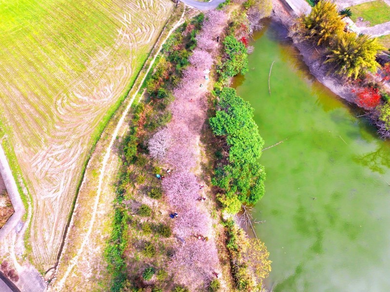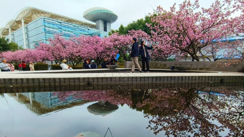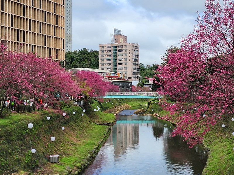 位處新北市新店陽光運動公園的河津櫻已陸續綻放,朵朵粉嫩櫻花點綴在枝頭,當悠閒漫步公園櫻花步道,映入眼簾的滿是粉嫩花朵與公園綠地交織出繽紛鮮活的對比色彩,透出早春的氣息,更令人期待的是,朵朵精緻的花苞亦蓄勢待發等待綻放,市民朋友不妨把握時節前來賞花。