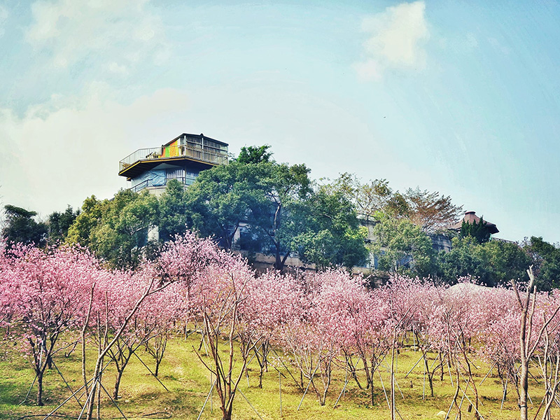 新社櫻花鳥森林不僅是賞櫻的熱點,還結合了賞鳥和賞景的多重享受。每年,園區內會舉辦鸚鵡放飛秀,讓遊客在欣賞櫻花的同時,還能與可愛的鳥兒親密接觸,感受大自然的魅力。特別是新蓋的合掌屋,提供輕露營的絕佳選擇,讓你可以在這片美景中徹底放鬆,享受與自然的和諧共處。