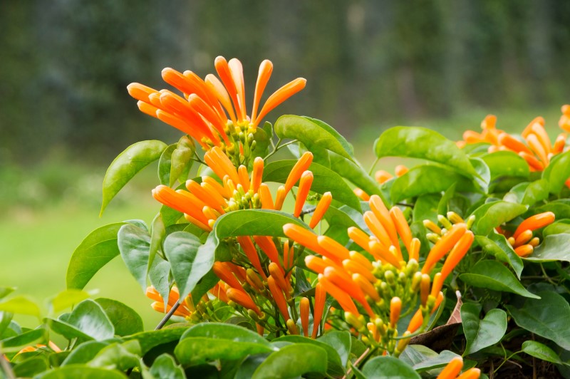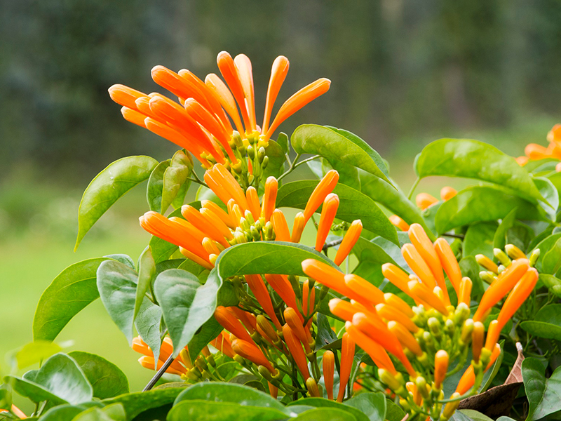 紫葳科的炮仗花,又稱「炮仗紅」、「炮竹花」、「黃金珊瑚」,每年的春天就是迎接炮仗花季的時節,纍纍花串猶如喜慶燃放的鞭炮而聞名。水利局局長宋德仁表示,每逢一月下旬,炮仗花的花苞就開始生長,炮仗花的花語富貴吉祥,寓意帶給人間幸運、幸福。開花時纍纍成串,就像是紮成一束的鞭炮一般,花朵本身帶著顯眼又喜氣洋洋的橘紅色,呼應華人傳統的慶典形象,因而得名。