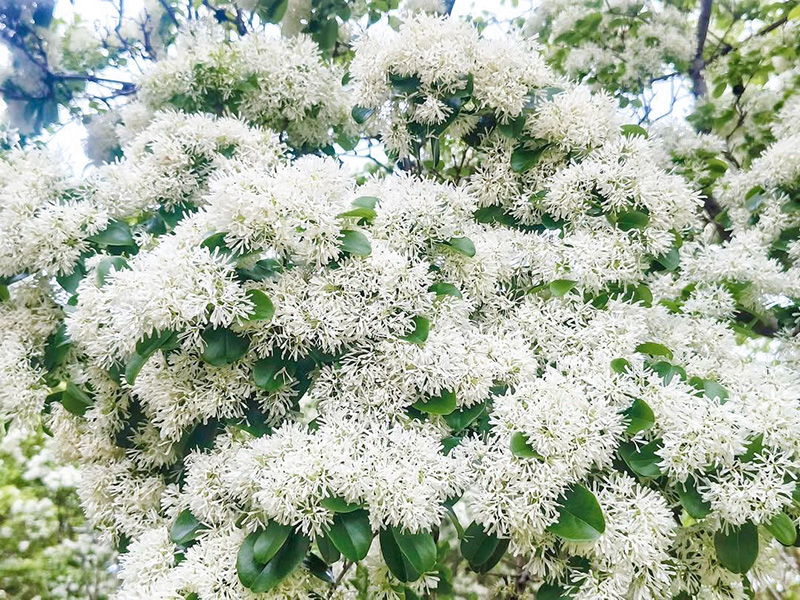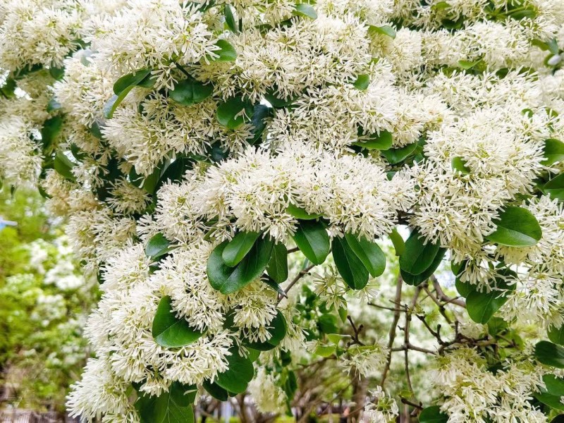流蘇花的花瓣撕裂細長,形狀如同古代仕女服飾上的流蘇,這也是它得名的原因。每當春風吹拂時,流蘇花的花瓣隨風輕輕飄落,猶如白雪覆蓋在大地上,這種景象被譽為「四月雪」,美得讓人不禁沉醉。流蘇花與桂花是近親,擁有類似桂花的清香,當你在公園中漫步時,隨處可聞這股淡淡的香氣,讓人心情愉悅,彷彿置身於自然的懷抱中。