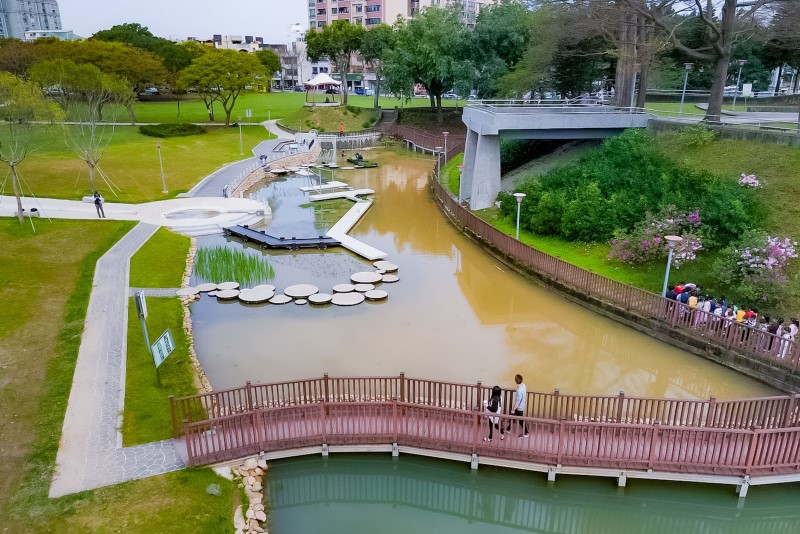 位於大園區田心里的「華興池生態埤塘公園」,是一座結合生態保育與人本設計的濱水綠地。園區佔地近7公頃,設計大幅打破原有堤防的高牆隔閡,讓水岸風光一覽無遺。沿著曲流水岸及親水平台散步,不僅可欣賞鳥類生態與湖畔倒影,還能體驗飛機從頭頂呼嘯而過的獨特景觀。