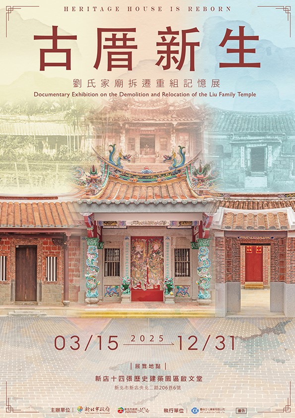 在展區啟文堂中,「古厝新生」主題展以十四張園區的異地遷建故事為軸,透過影像與實體展示,講述歷史古厝如何在都市化的浪潮下重獲新生。每一塊磚瓦、每一道木樑,都記錄著新店早期的生活樣貌與人文風采。讓觀者從結構到故事,重新拼湊起屬於這片土地的歷史篇章。