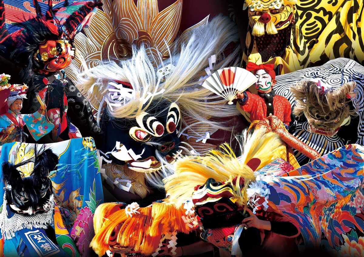 每個團體的舞獅從顏色、形狀到布料都華麗且各具特色,再加上激烈的動作與銅鑼的聲響,在祭典上舞動起來更讓觀眾感到無比的震懾力,此外,在場外也有展示區讓人實際觸摸道具,甚至是製作紙箱獅頭等等,是能夠讓大家體會到歡快的祭典。