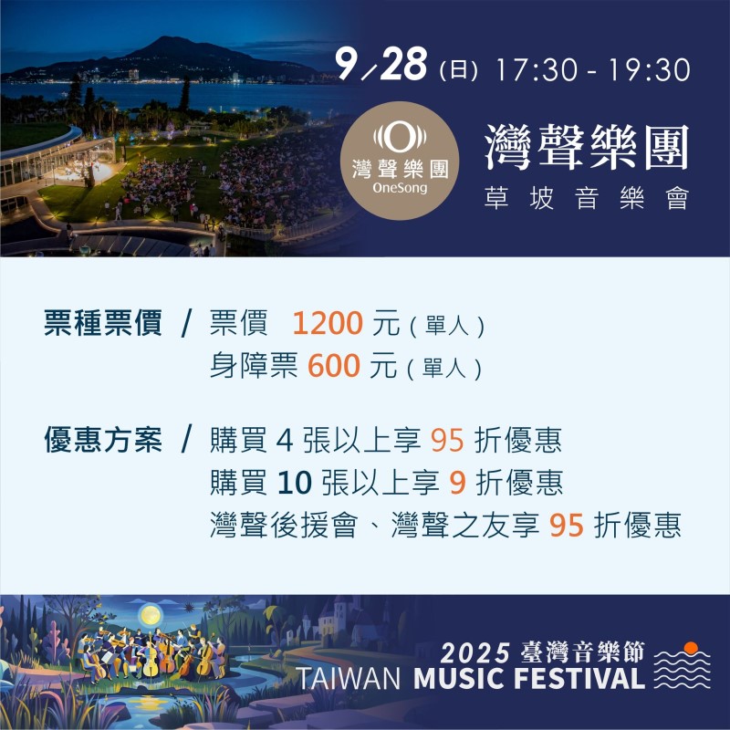 由滬尾藝文休閒園區與灣聲樂團 OneSong Orchestra 共同創辦的「臺灣音樂節」,自2022年起便以創新形式獲得廣大迴響。2025年邁入第四屆,將於8月正式啟動,而9月28日的戶外草坡專場音樂會更是年度最受矚目的焦點。活動延續「音樂走出廳堂」的理念,邀請樂迷走進淡水的自然懷抱,以最貼近土地的方式聆聽臺灣音樂的脈動。