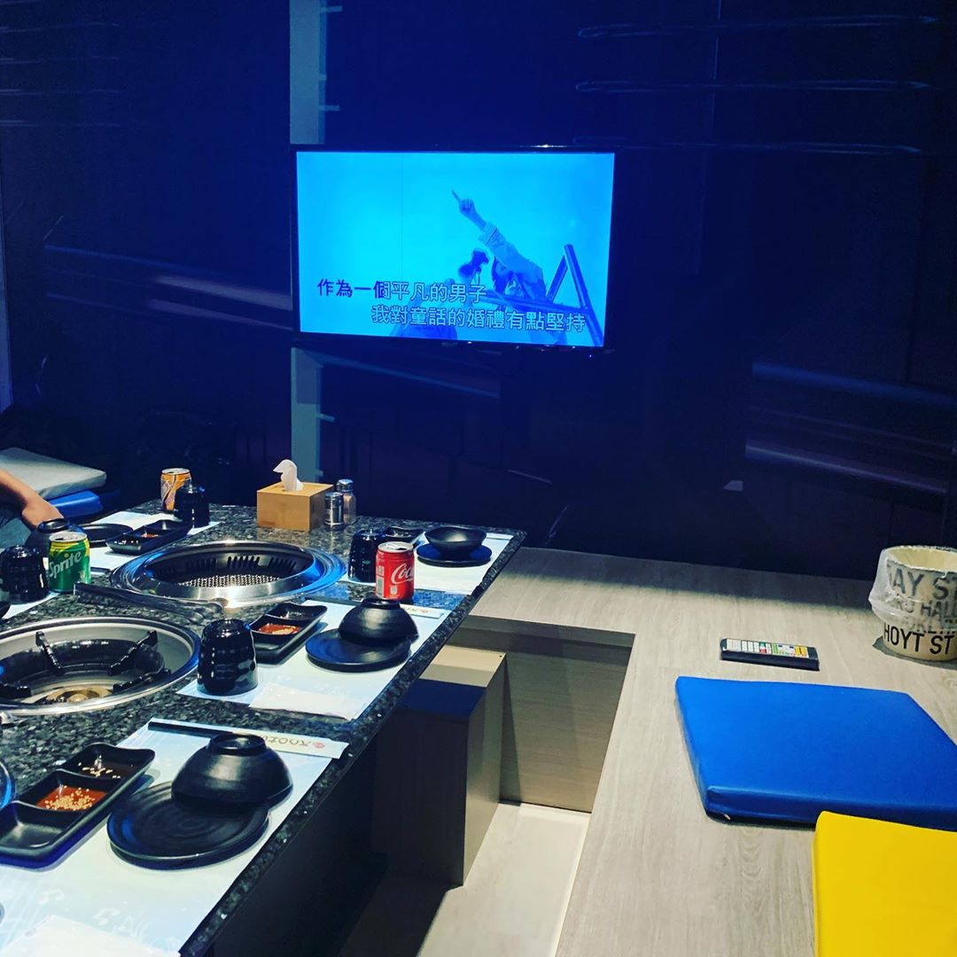 包廂內把兩個烤爐跟卡式爐搬進去,小包廂可容納到8位,同時烤肉煮火鍋,一般多人吃烤肉最怕烤不夠吃,因此店家有提供熟食可以點,就不怕餓肚子啦!大螢幕的電視加上無線麥克風,整個包廂都是我的主場,用餐限制兩小時,若是吃飽了還唱不過癮,可以每人再付每小時的歡唱費,就可以繼續高歌啦!