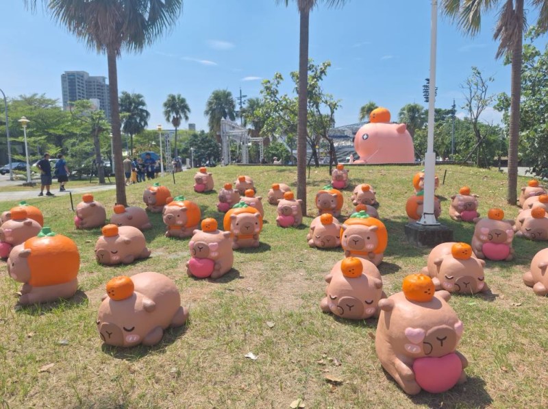 除了卡比胖拉氣偶,水豚紙雕裝置也掀起另一波驚喜。紙雕作品以細膩的線條和柔和的色彩呈現出水豚的憨厚模樣,靜靜佇立在園區一隅,帶來安靜而療癒的氛圍。藝術家將紙雕與光影結合,讓白天呈現自然質感,夜晚在燈光映襯下則宛如活靈活現,吸引許多旅客駐足拍照。