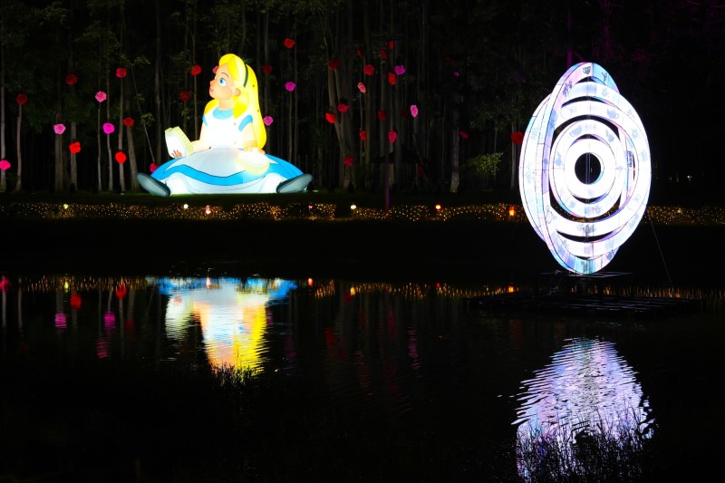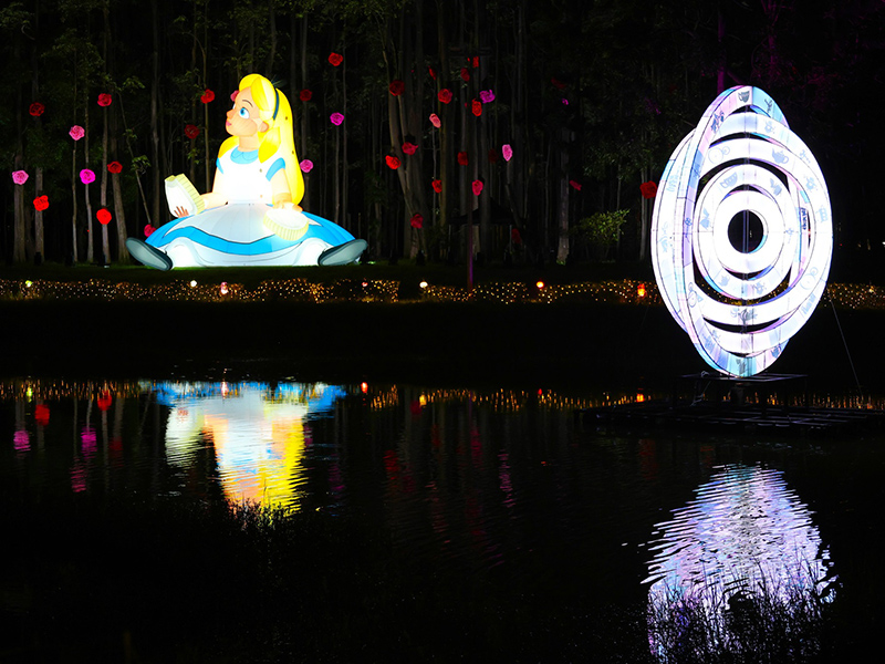 2025年最受矚目的亮點,莫過於跨界合作迪士尼經典IP《愛麗絲夢遊仙境》。展區中設置了高達9米的巨型愛麗絲裝置,以及全長30米的沉浸光環隧道,讓民眾彷彿穿越童話世界。這場跨界藝術盛宴,不僅是光影展,更是一次沉浸式的奇幻旅程。