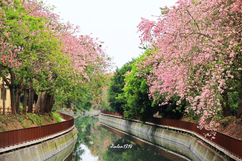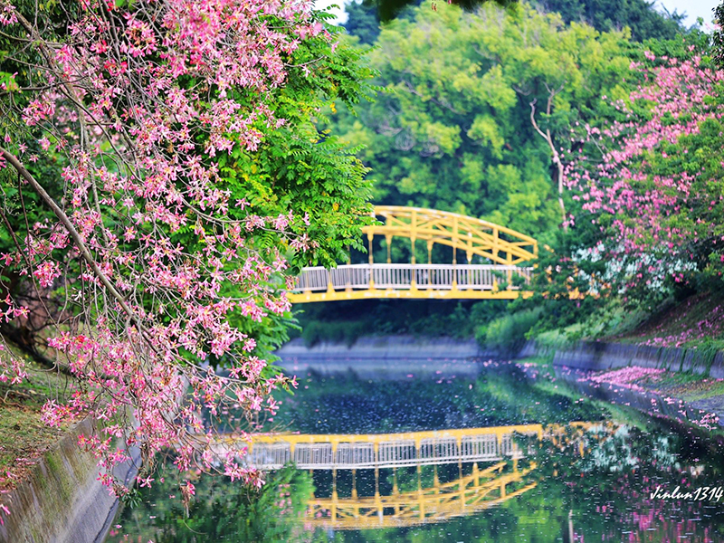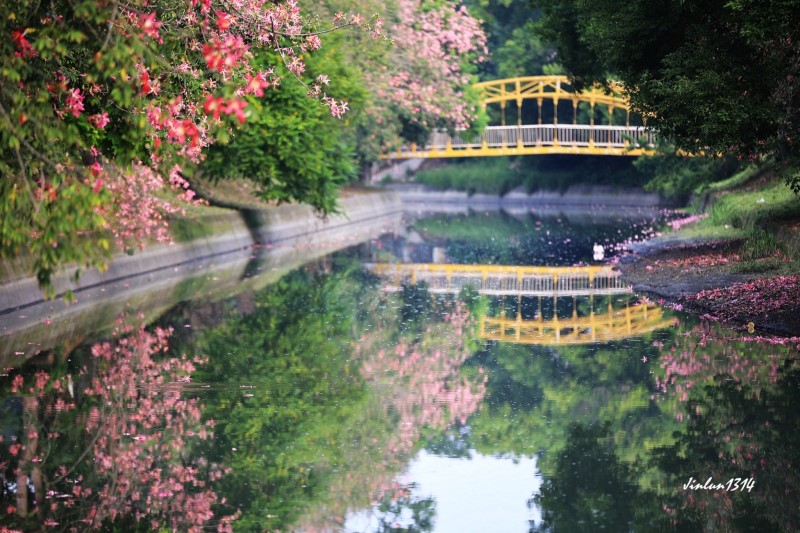 美人樹的花色多為紫紅色與淡粉紅色,因其優雅的姿態與滿樹花影,被暱稱為「美人櫻」。盛開時不論是遠景拍攝花道,還是近距離捕捉花朵細節,都能呈現出不同層次的美感。尤其是將花影與水面倒影一同入鏡,更能拍出如畫般的夢幻景緻。