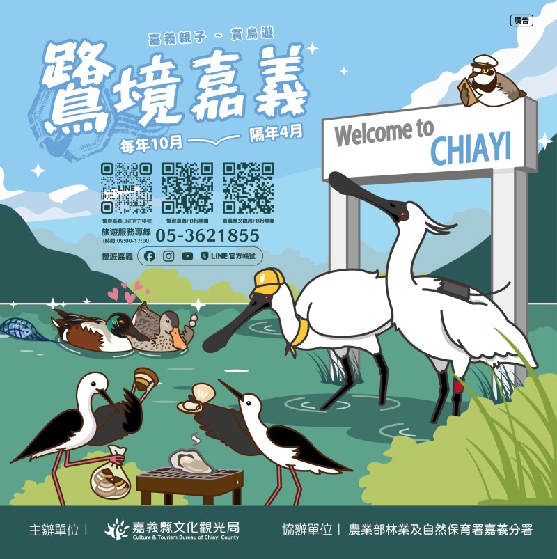每年10月至來年4月,是台灣西南沿海最熱鬧的季節。當一群群候鳥從北方飛來,嘉義東石、布袋一帶的濕地就成了牠們最愛的休憩地點。嘉義縣文化觀光局今年特別推出親子賞鳥遊「鷺境嘉義」活動,讓大小朋友變身生態探險家,一起走進濕地、聽鳥鳴、集章破任務,開啟一場自然系的秋冬冒險!